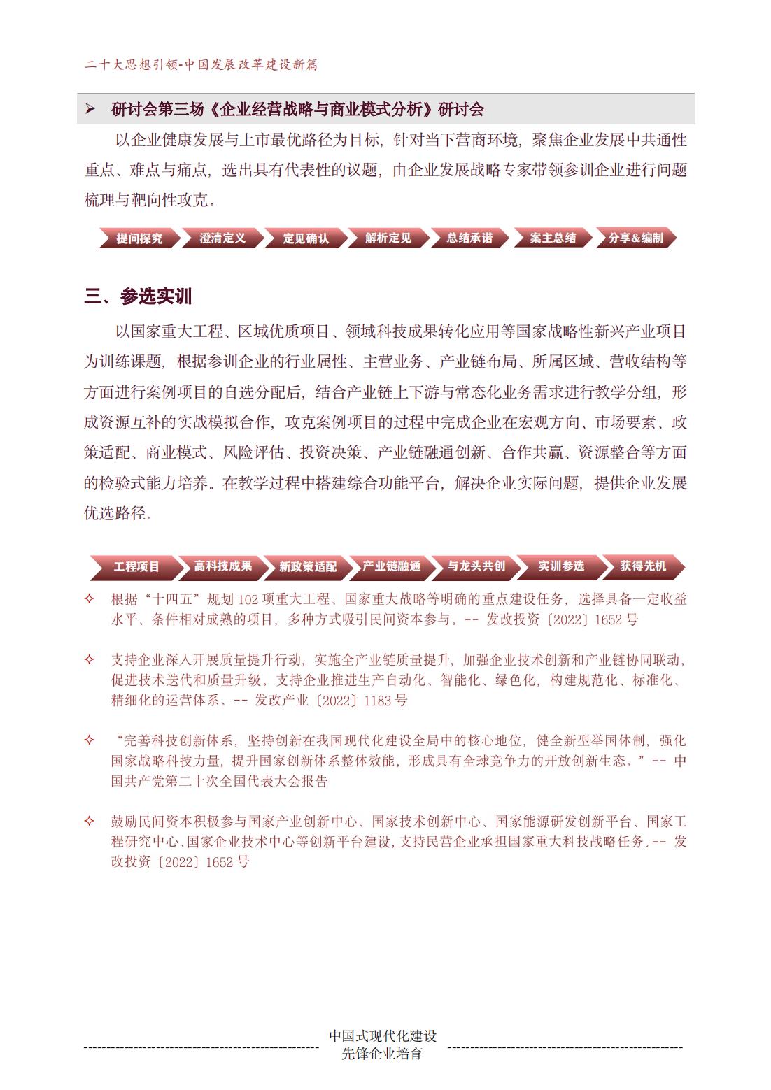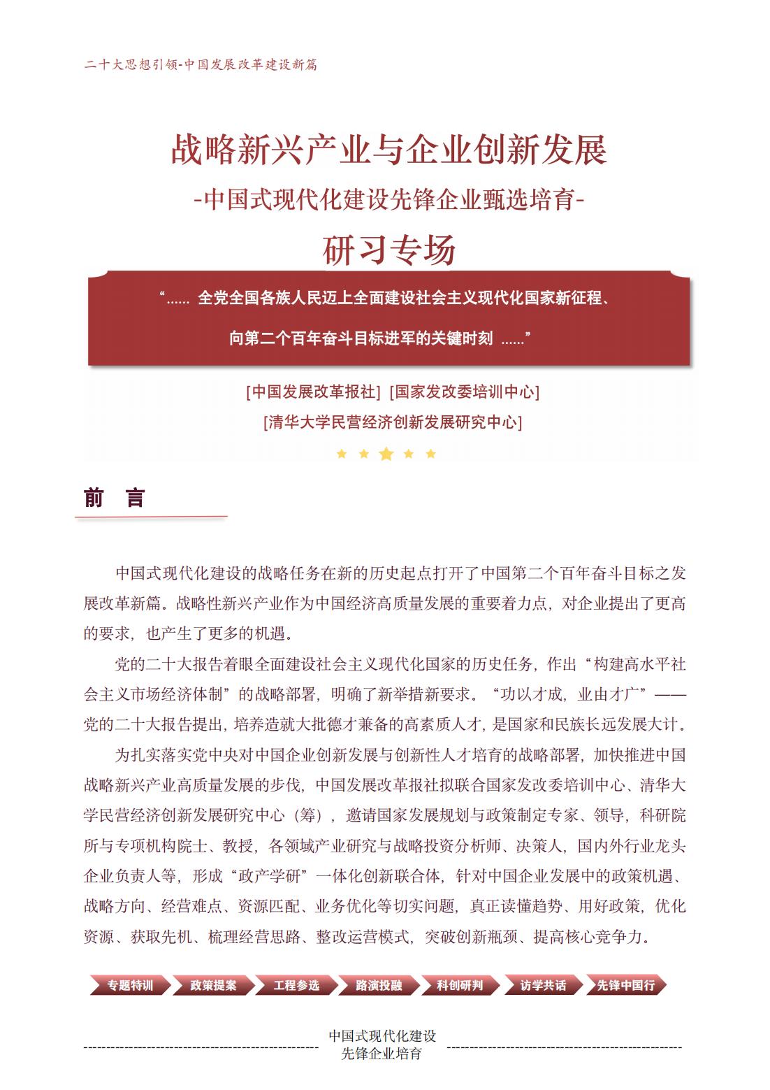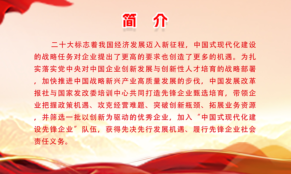 中国式现代化建设先锋行动企业系列培训首场活动即将于12月23日启动,进行为期三天的半封闭式集中学习(专题解析场→项目实训场→路演投融场),完成研习与实训后,加入“中国式现代化建设先锋行动企业”队伍,获得先决先行发展机遇、履行先锋企业社会责任义务。